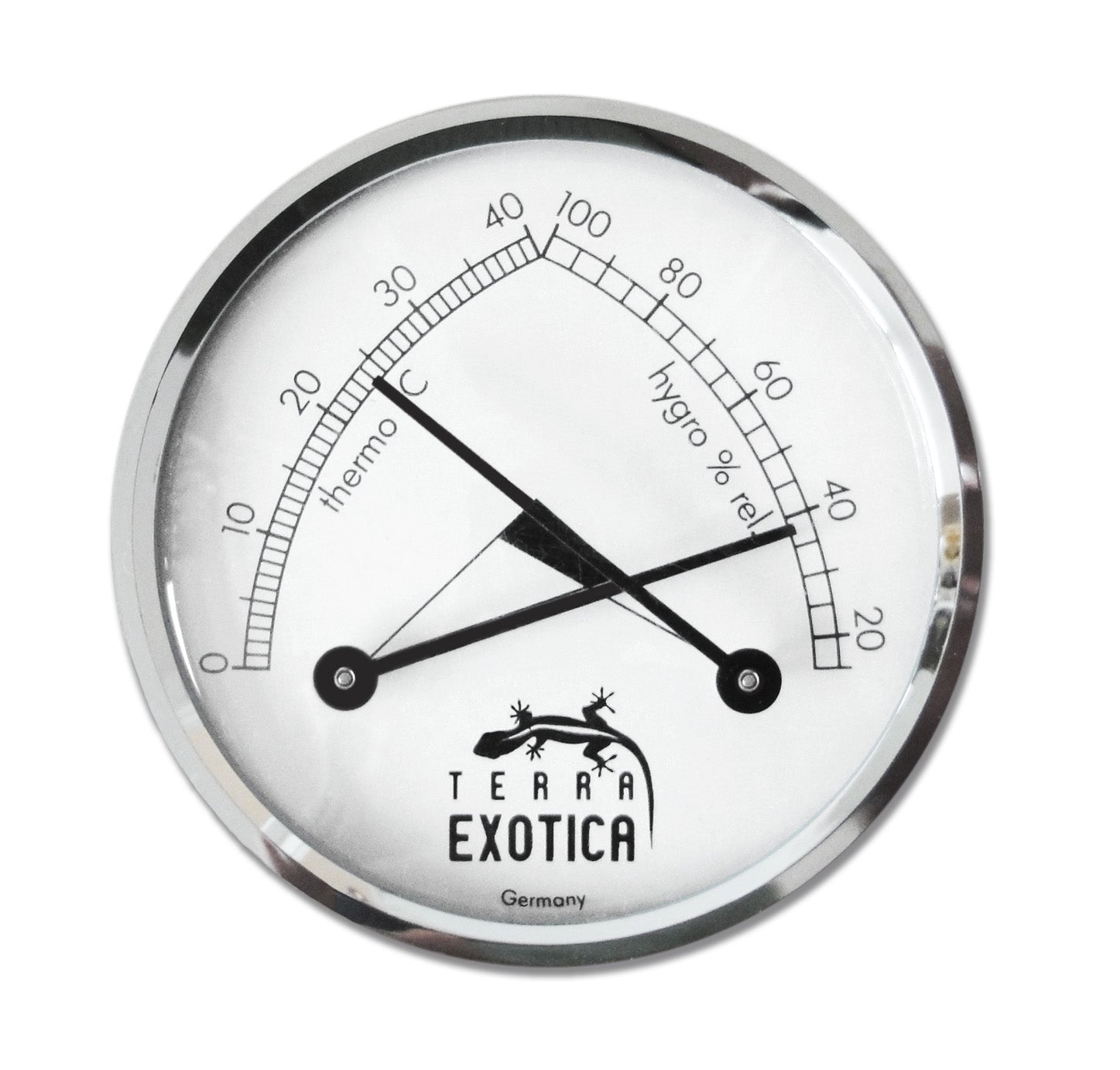 Terra Exotica Thermo-Hygrometer analog mit Silberring – Temperatur- und Feuchtigkeitskontrolle im Terrarium