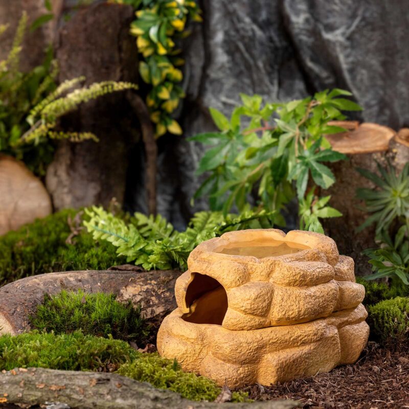 Durch die abnehmbare Abdeckung lässt sich der Big Rock leicht öffnen – ideal, um Tiere zu beobachten oder ein Eigelege zu entnehmen. Mit feuchtem Exo Terra® Forest Moss oder Sphagnum Moss befüllt, eignet sich die Höhle hervorragend als Eiablageplatz.