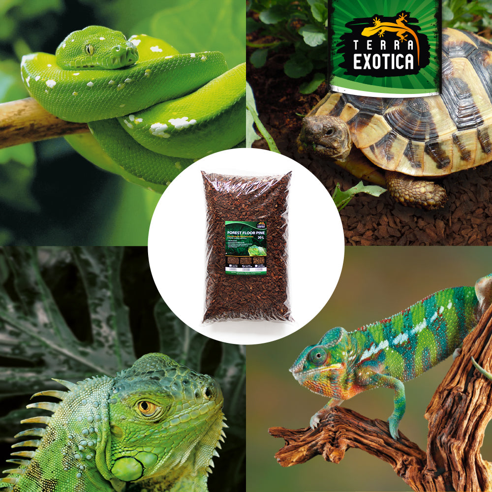 Forest Floor Pine ist ein dekorativer Bodengrund speziell für Feucht- und Regenwald-Terrarien. Die mittelgroße Körnung sorgt für ein natürliches Aussehen und eine ideale Grundlage für Ihre Reptilien und Amphibien. Durch die enthaltenen ätherischen Öle wirkt die Pinienrinde keimhemmend und unterstützt ein gesundes Mikroklima. Gleichzeitig nimmt sie Feuchtigkeit zuverlässig auf und fördert ein feuchtes Terrarienklima, wie es in tropischen Lebensräumen vorkommt.