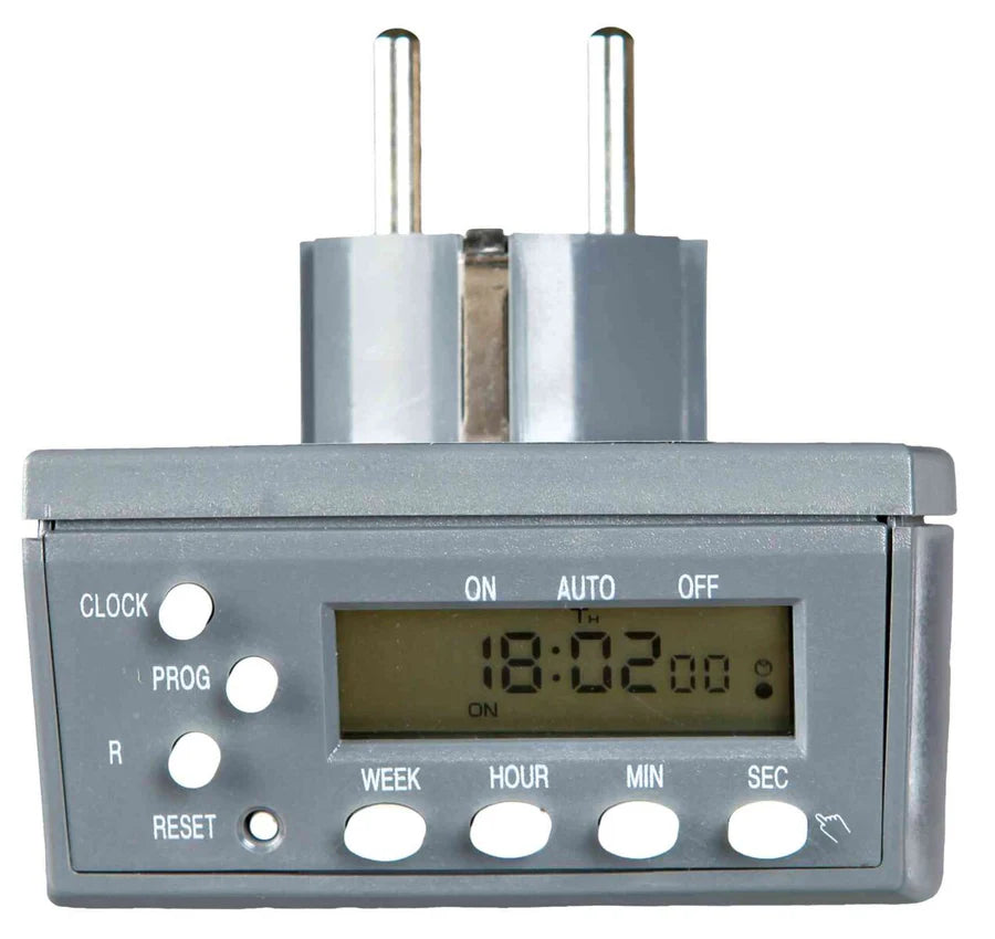Die TRIXIE Digitale Zeitschaltuhr ermöglicht eine zuverlässige Steuerung von elektrischen Geräten wie Beleuchtung oder Heizungen im Terrarium. Es lassen sich bis zu 8 Ein- und Ausschaltzeiten einstellen, die individuell täglich, an bestimmten Tagen oder in Blöcken programmiert werden können.